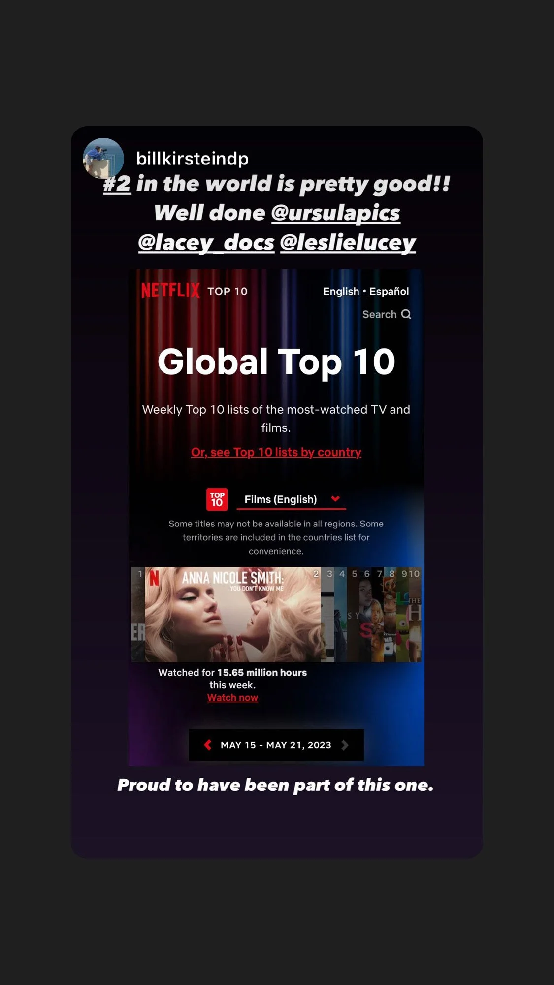The film struck a chord with audiences worldwide, praised for its access and for challenging the myth of the “blonde bombshell” to reveal a complex, ambitious woman whose life reflected both the power and cost of reinvention. For me, it was a privilege to help shape a documentary that asked audiences not just to remember Anna Nicole Smith, but to finally see her.